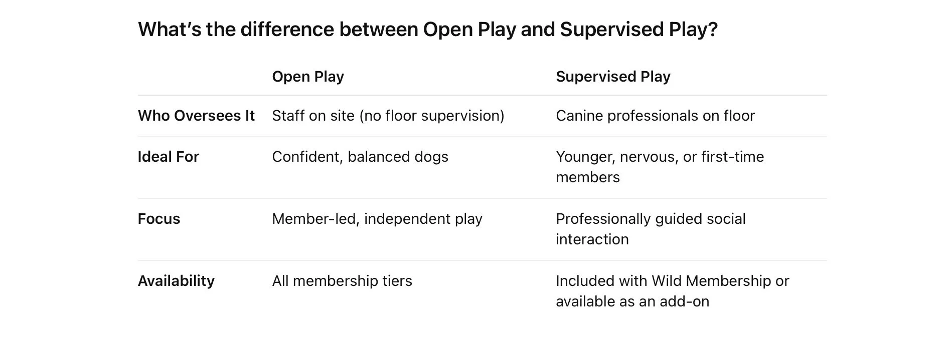 Our memberships reflect professional oversight, trauma-free practices, and controlled access that keep dogs safe, clean, and emotionally balanced — not overstimulated.